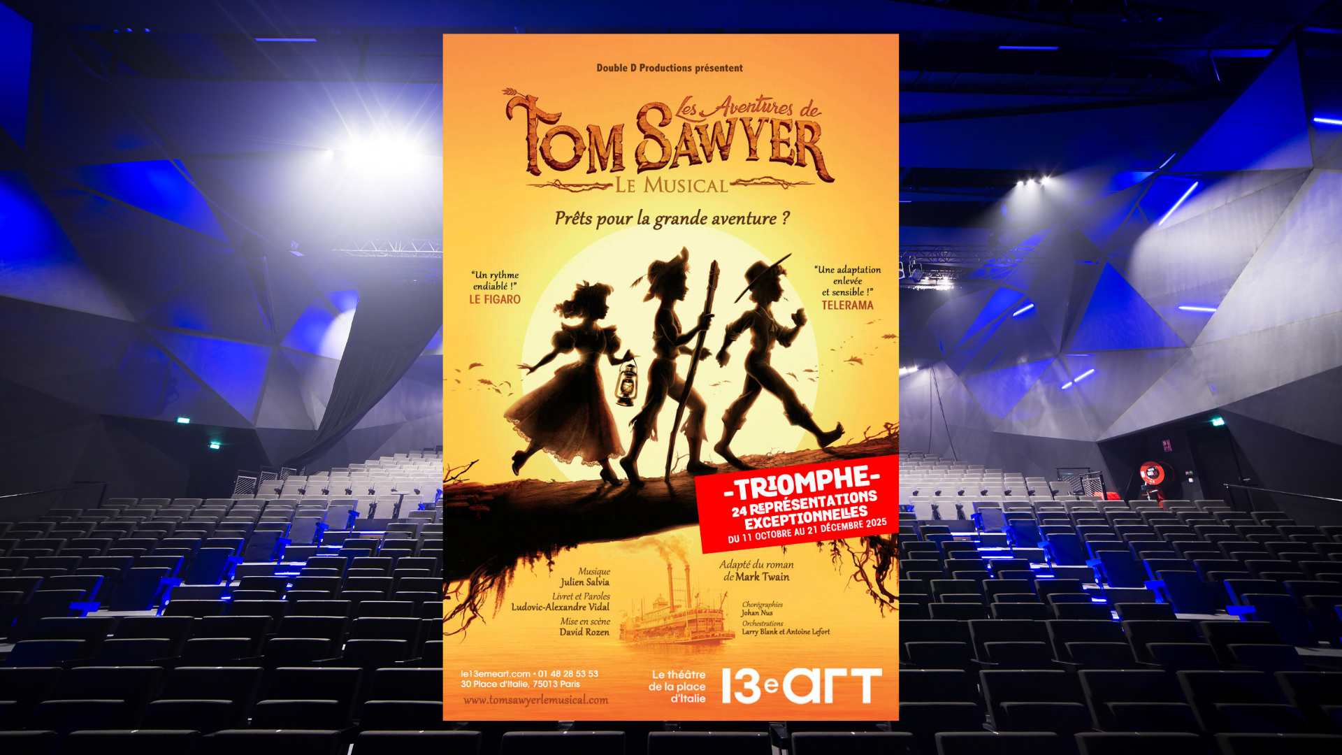 Après avoir enchanté le Théâtre Mogador en 2018 et décroché 11 nominations aux Trophées de la Comédie Musicale, « Les Aventures de Tom Sawyer » reviennent à Paris, au Théâtre Le 13e Art, pour 24 représentations exceptionnelles.