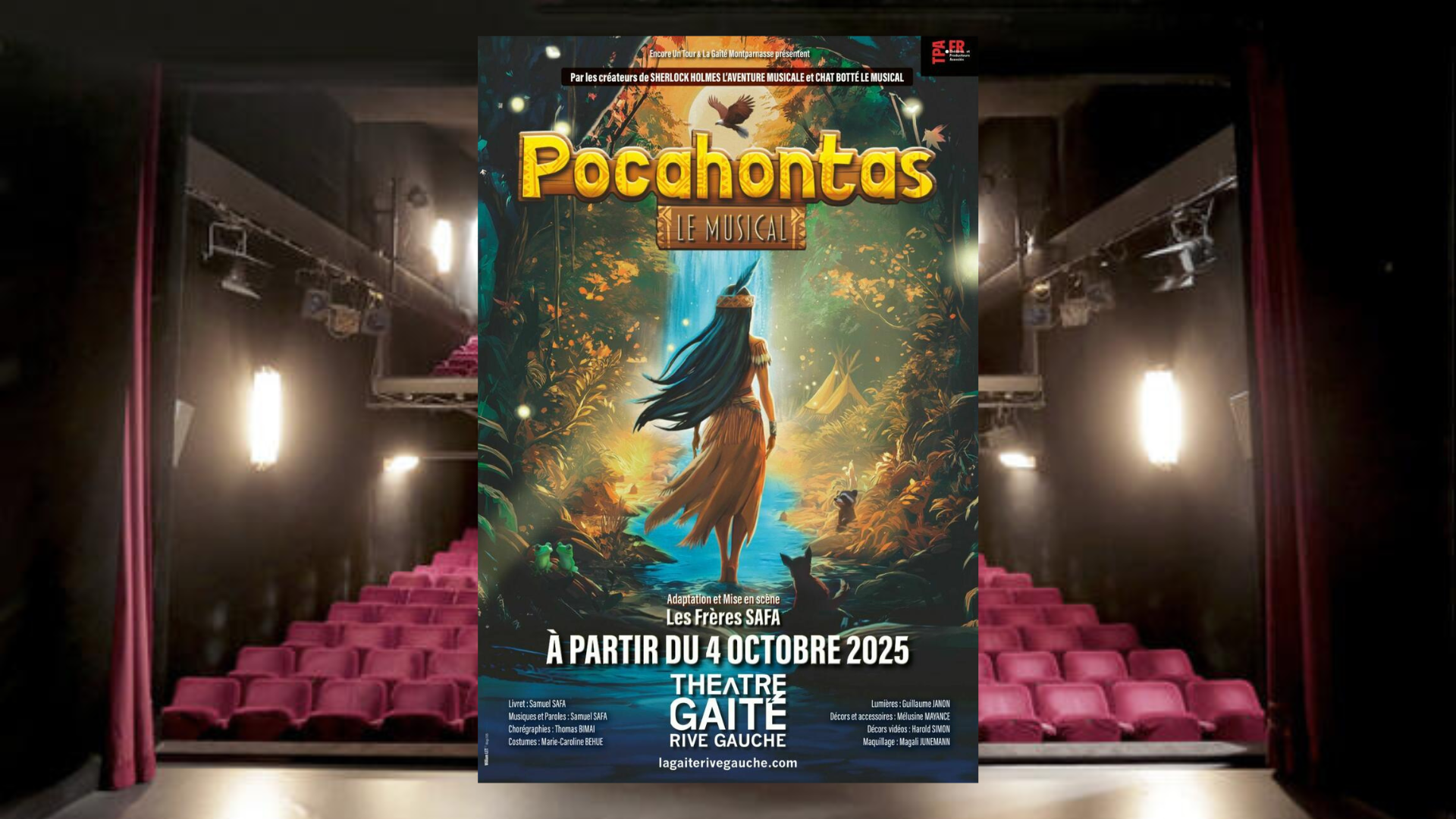 Après « Sherlock Holmes, l'aventure musicale » et « Chat Botté, Le Musical » (Meilleur spectacle jeune public aux Trophés de la Comédie Musicale en 2025), les Frères SAFA revisitent la légende de Pocahontas dans un spectacle familial éblouissant.
