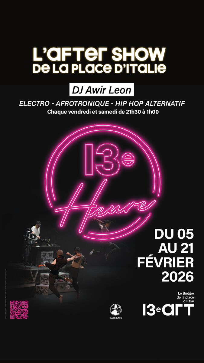 À la suite de la représentation du spectacle DUB de la Compagnie Amala Dianor, le compositeur et DJ Awir Leon quittera la scène de la Grande Salle du 13e Art pour vous ambiancer à La 13e Heure !