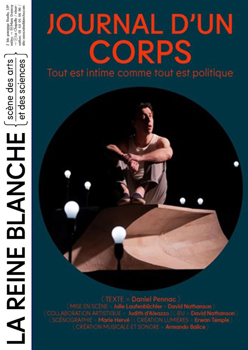 L’histoire, à la première personne, d’un homme qui se raconte de ses 13 ans à ses derniers jours à travers les manifestations de son corps. Il y est question d’enfance, de scouts et de fourmis, de paternité, de maladie, de désir et d’amour mais surtout du temps qui passe et de ce qu’il fait sur nous. Un journal intime qui parle et qui part du corps.