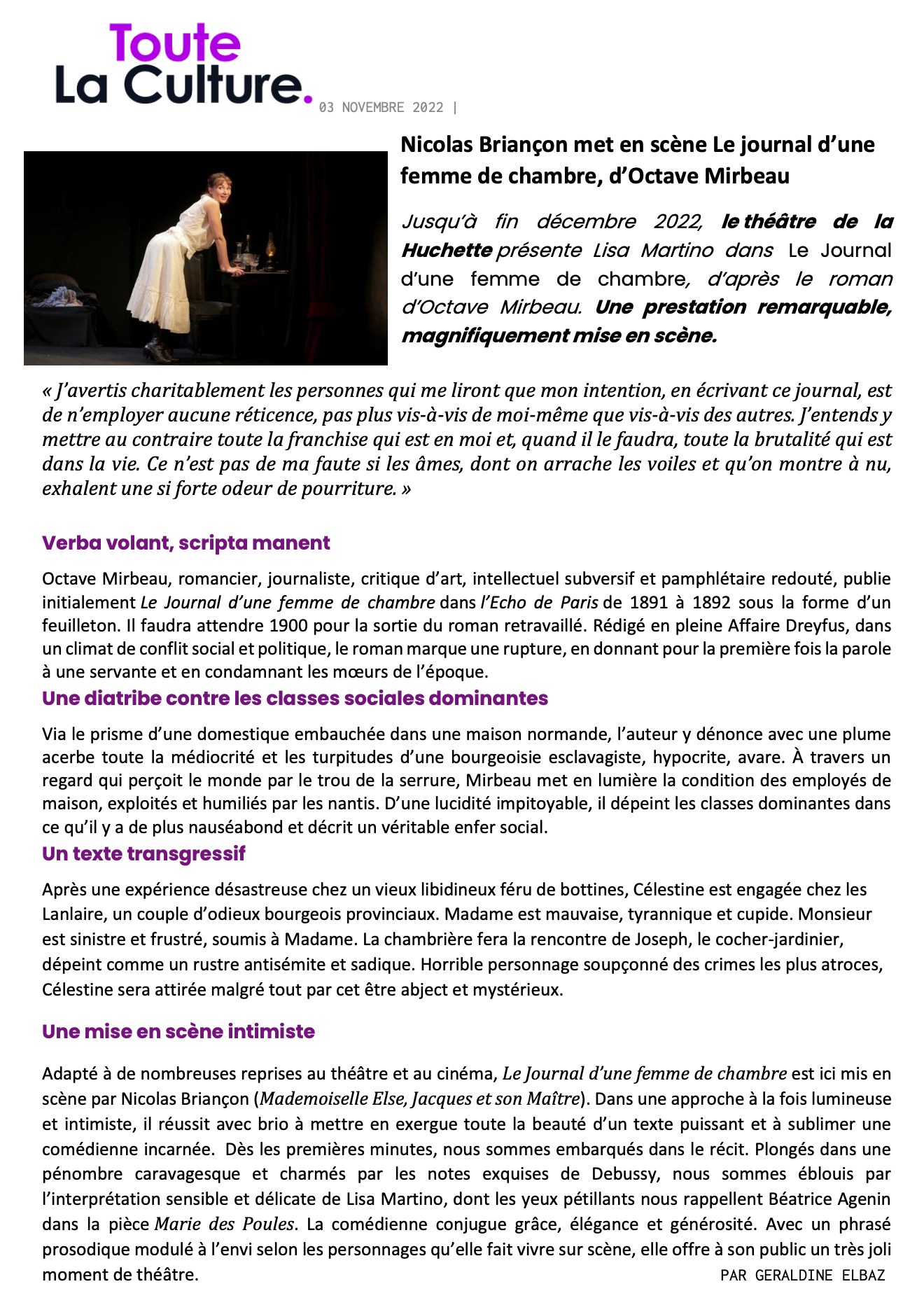 Un spectacle inventif et débordant d’énergie, un vrai bonheur. Tous les personnages sont joués avec brio par trois comédiennes. La mise en scène de Bastien Ossart est créative, astucieuse, audacieuse, pétulante et réjouissante. Les comédiennes par leurs gestuelles,... Lire plus